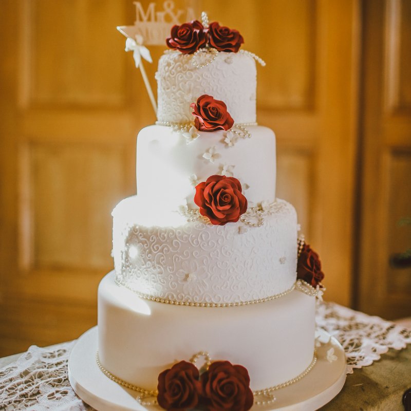 A stunning four-layer BakeryLAB masterpiece, filled with smooth almond cream between each layer and finished with elegant pâte à sucre. Refined, timeless, and beautifully crafted, this cake is designed to be both a visual centerpiece and a delectable highlight of your wedding celebration.